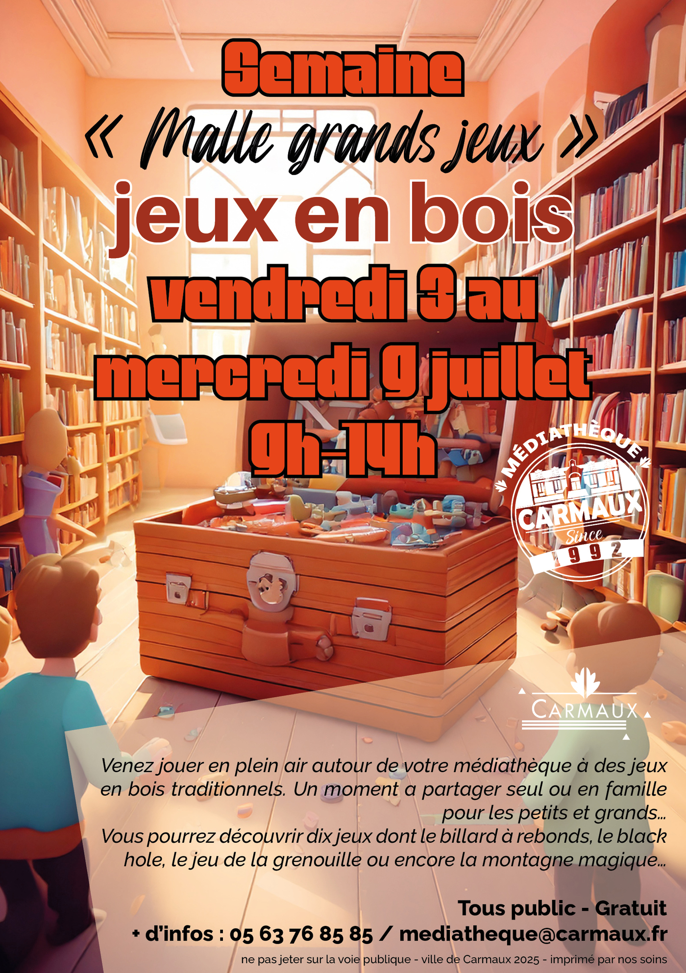Venez jouer en plein air autour de votre médiathèque à des jeux en bois traditionnels. - Médiathèque de Carmaux
