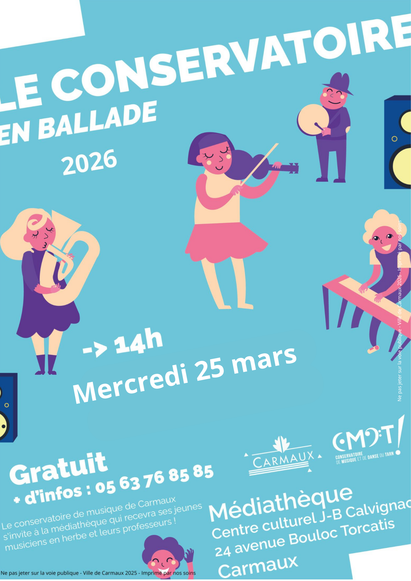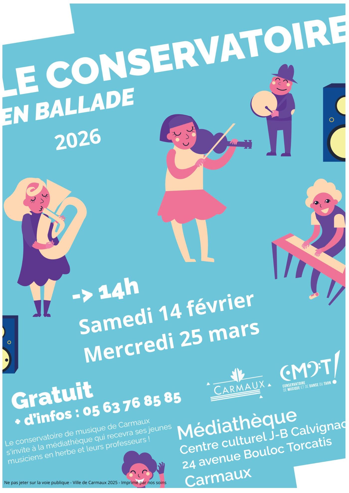 + d’infos : 05 63 76 85 85 / Cette adresse e-mail est protégée contre les robots spammeurs. Vous devez activer le JavaScript pour la visualiser. / https://mediatheques.dlireetplus.fr - https://lamediatheque.carmaux.fr