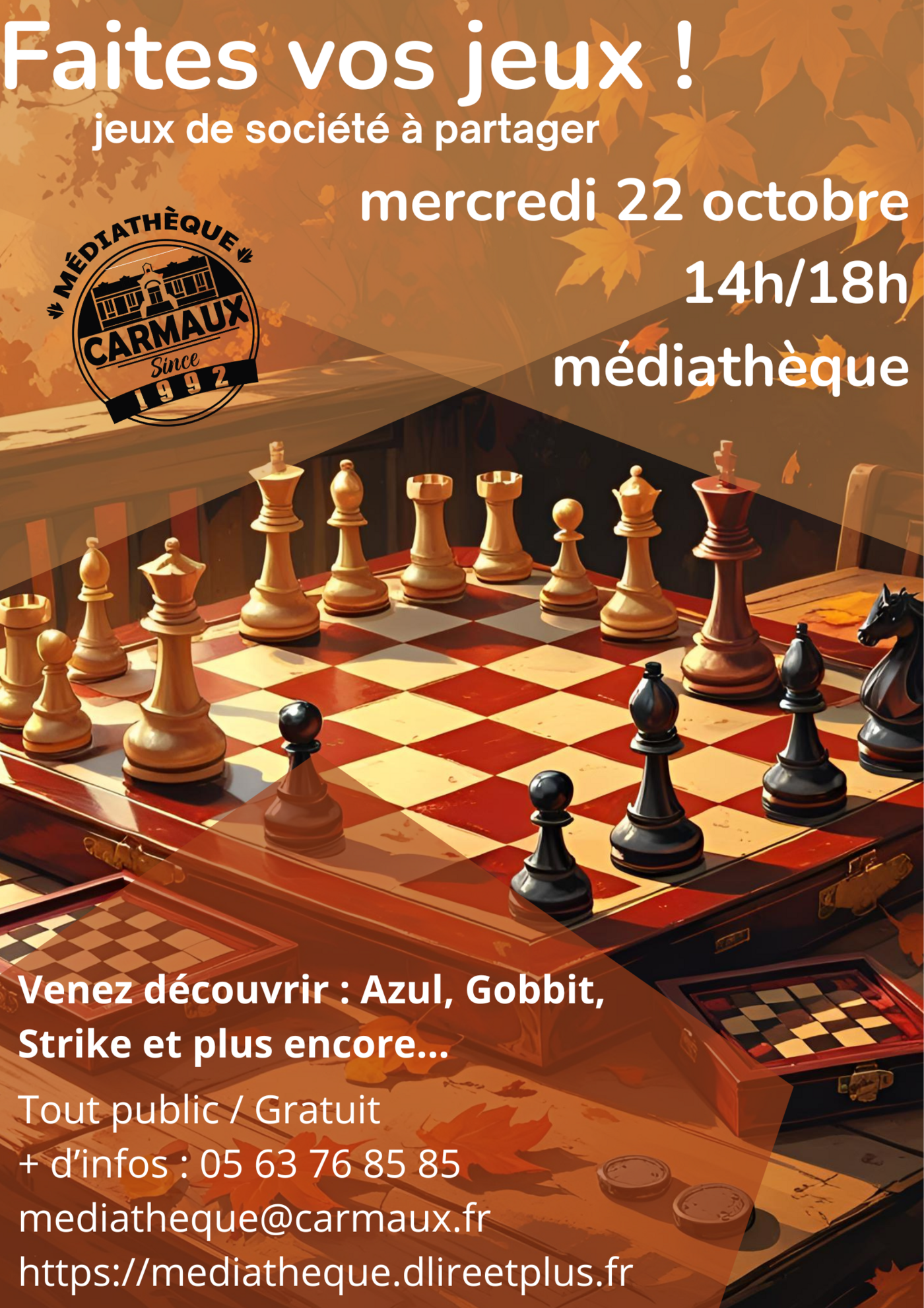 L’espace d’un moment, la médiathèque vous propose la découverte de jeux de société. - Médiathèque de Carmaux