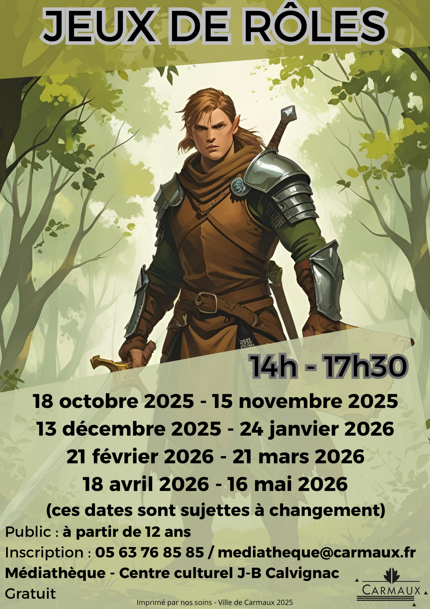 Envie d’aventures ? Devenez chevalier, loup-garou ou encore druide, le temps de quelques séances. - Médiathèque de Carmaux