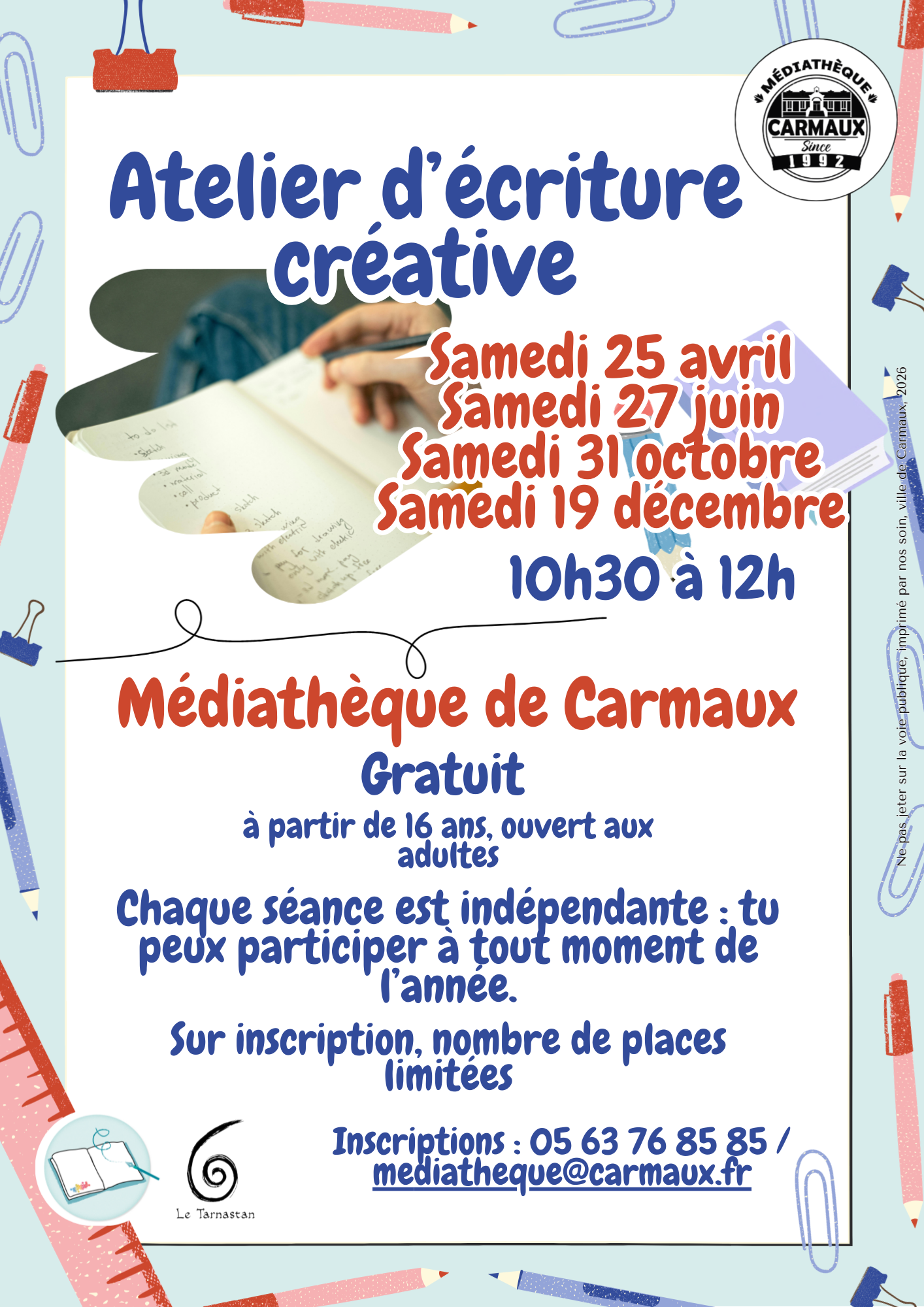 Tu as envie d’écrire ? Rejoins l’atelier d’écriture créative ! - Médiathèque de Carmaux