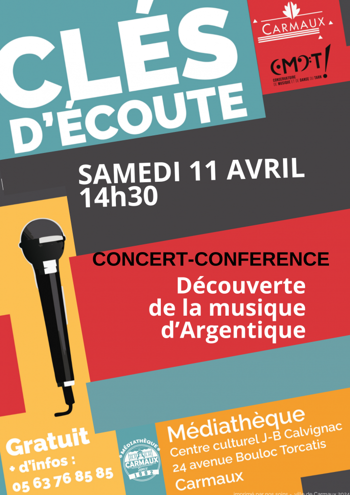 Les professeurs du conservatoire de musique du Tarn vous proposent un concert commenté sur les musiques d'Argentine. Des élèves du conservatoire les accompagneront pour jouer et commenter des extraits.